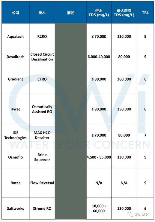下表列出了目前市場上使用RO技術(shù)進行鹽水濃縮的一些領(lǐng)先公司及其產(chǎn)品: