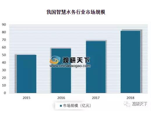 據(jù)數(shù)據(jù)顯示,2017年中國智慧水務(wù)市場(chǎng)規(guī)模增長至約68.59億元,同比增長17%。2018年中國智慧水務(wù)行業(yè)市場(chǎng)規(guī)模達(dá)82億元左右。隨著物聯(lián)網(wǎng)、大數(shù)據(jù)、云計(jì)算及移動(dòng)互聯(lián)網(wǎng)等新技術(shù)不斷融入傳統(tǒng)行業(yè)的各個(gè)環(huán)節(jié),工業(yè)純水設(shè)備新興技術(shù)和智能工業(yè)的不斷融合,智慧水務(wù)行業(yè)發(fā)展具有明顯的前景。