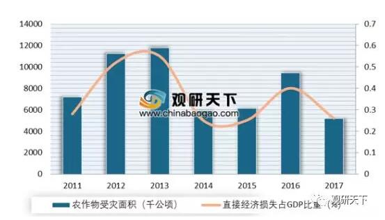 2011-2017年我國農(nóng)作物受災(zāi)面積情況
